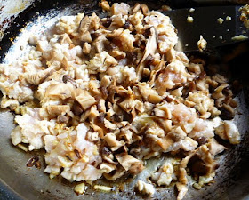 To make the mushroom and pate paste - place chopped mushrooms into a food processor and blend to a paste. Fry mushroom paste with a little salt (without oil) til you get a condensed paste (get rid of as much liquid as possible). Remove from pan, mix in the pate and set aside.